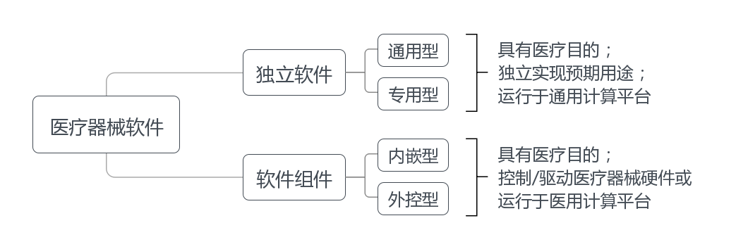 獨立軟件作為醫療器械或醫療器械附件,通常單獨注冊,特殊情況可隨醫療器械進行注冊,此時雖不控制/驅動醫療器械硬件但從產品角度運行于醫用計算平臺,故視為軟件組件,如專用型獨立軟件可作為附件隨醫療器械進行注冊。
